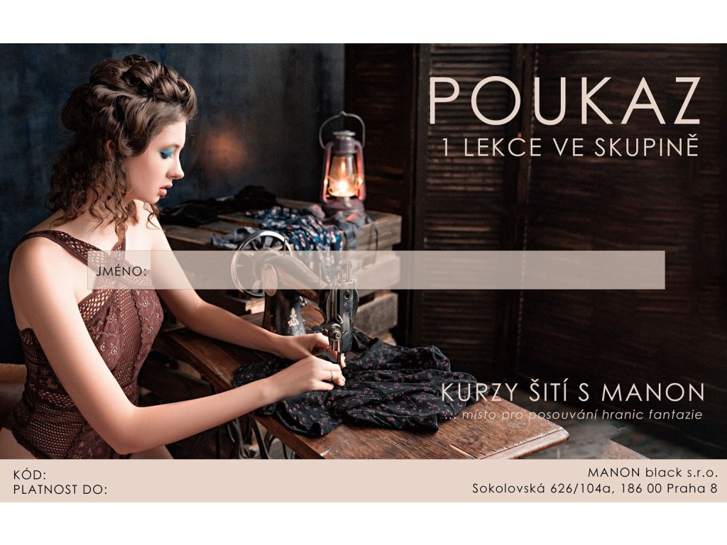 Poukaz na jednu lekci šití v délce 3 hodin v kolektivu ostatních studentů a pod vedením zkušené lektorky a návrhářky.